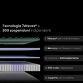 Primo strato ad onde di ampiezza variabile in base alle 7 zone del corpo per una naturale decompressione delle vertebre. 800 molle insacchettate indipendenti a 7 zone di portanza differenziata.