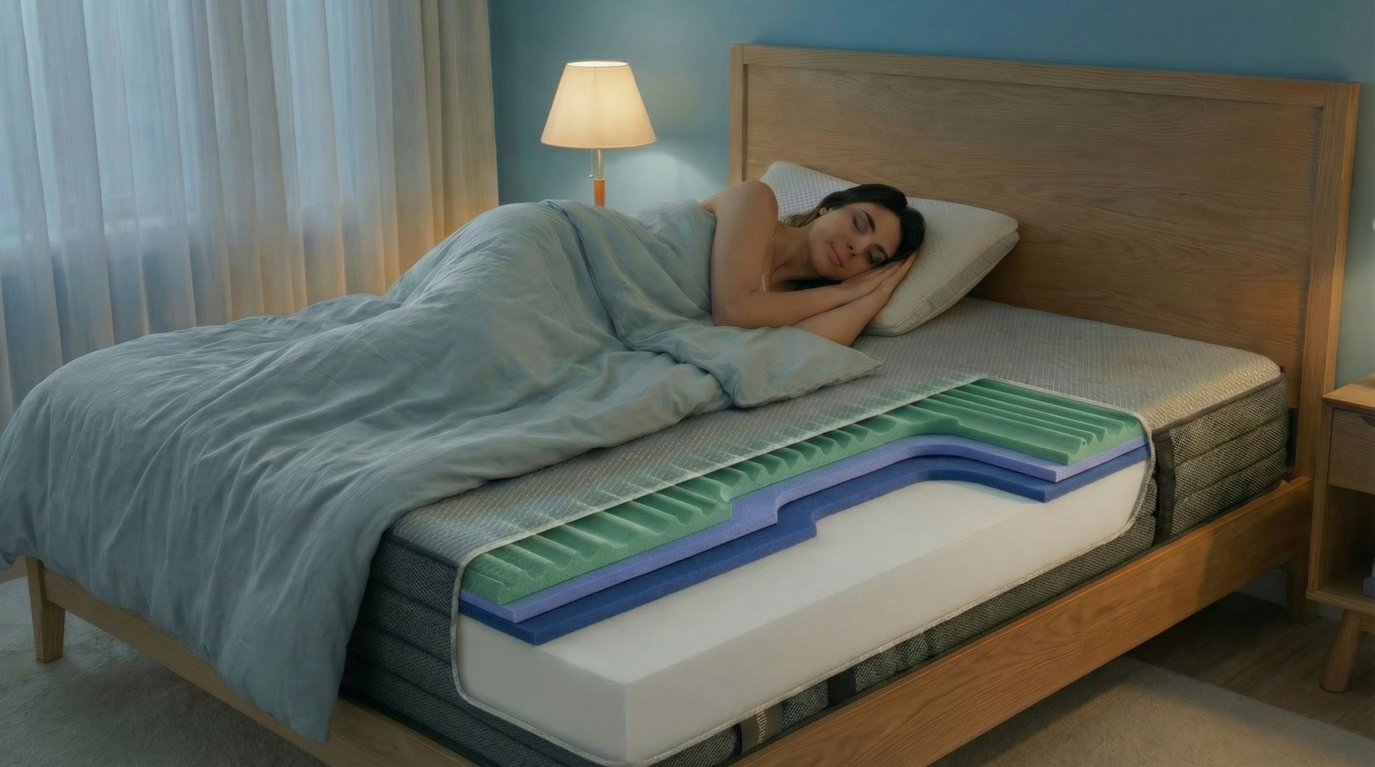 Progettato per favorire una postura più coerente con le curve naturali del corpo durante il riposo. Validato con test tecnici di supporto e distribuzione dei carichi in diverse posizioni.