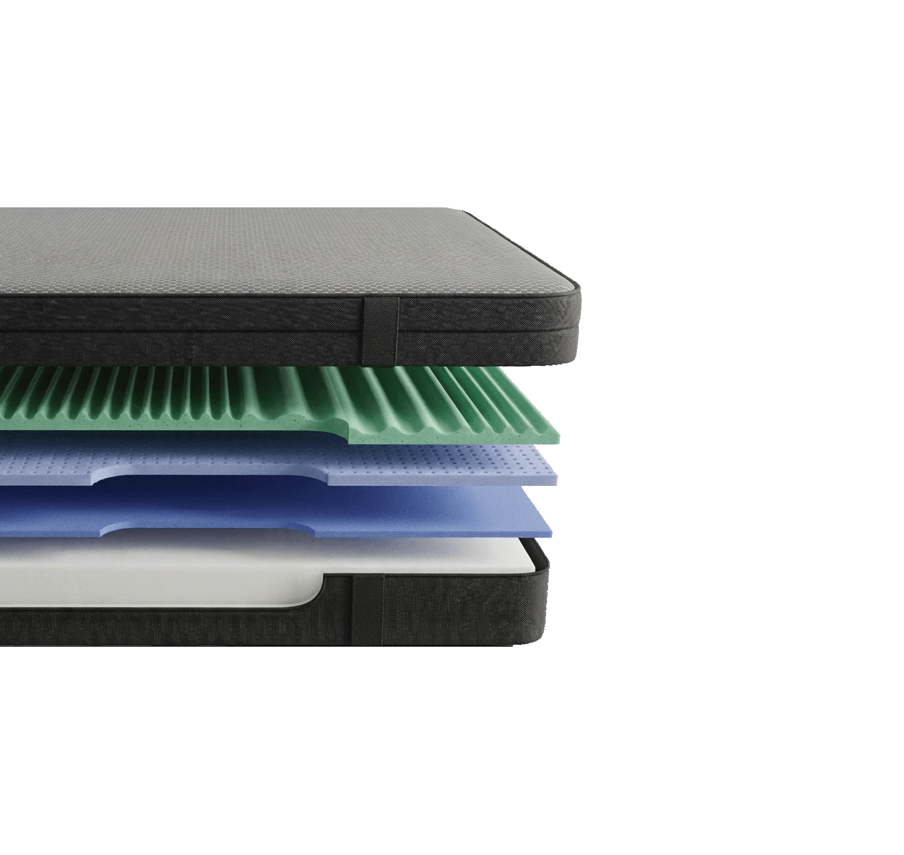 Quattro strati progettati per combinare accoglienza, stabilità e risposta progressiva, con base piena ad alta densità come fondazione del supporto.