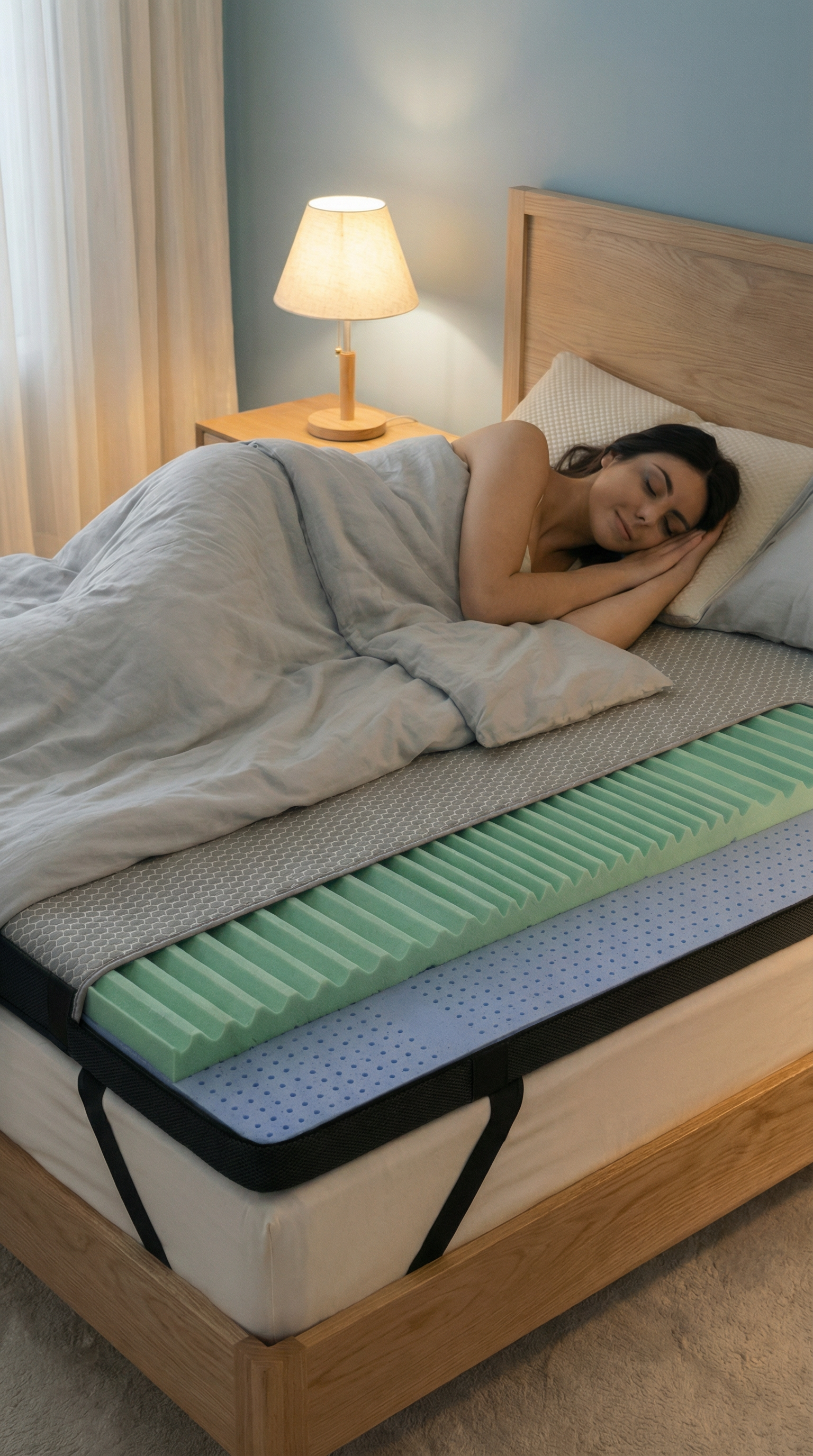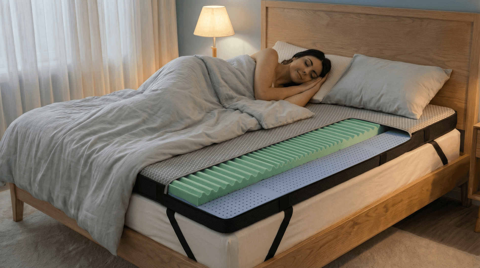 Due strati in Memory AirCell progettati per migliorare accoglienza e ventilazione, rendendo più confortevole il piano di riposo senza stravolgere il supporto del materasso sottostante.